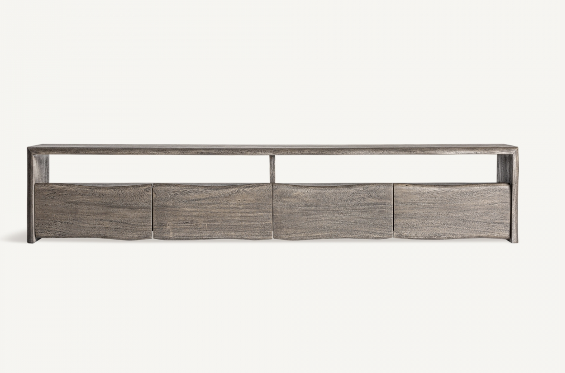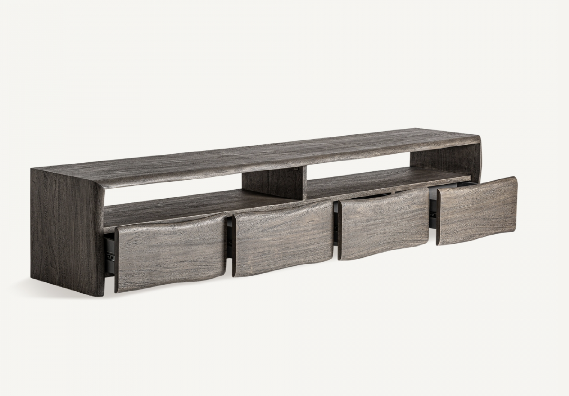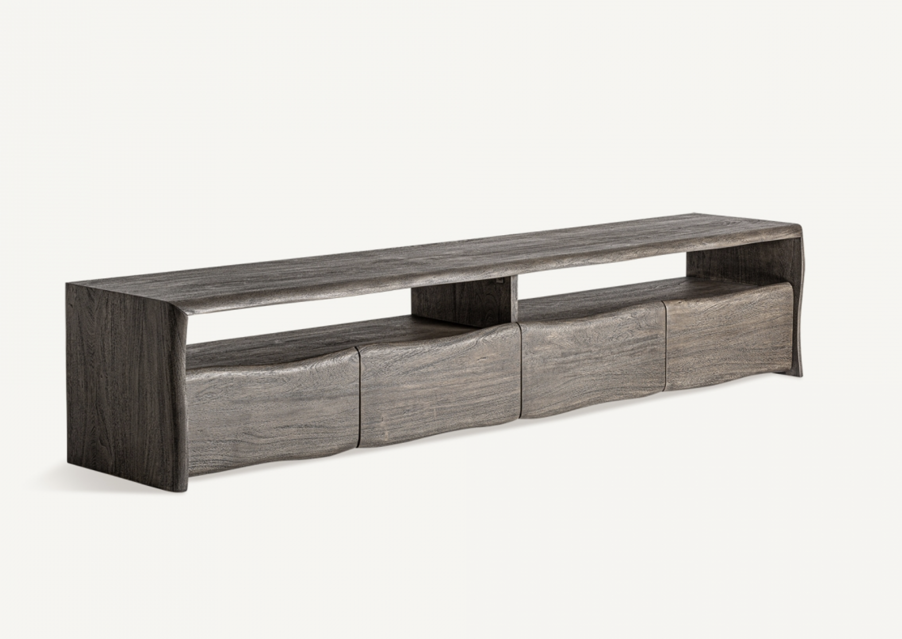 Autentyczność i funkcjonalność łączą się w szafce pod telewizor Lison. Jej rustykalny design z brązowego drewna akacjowego przekazuje siłę i naturalny urok, dodając ciepła do salonu dzięki dyskretnej, ale potężnej obecności.