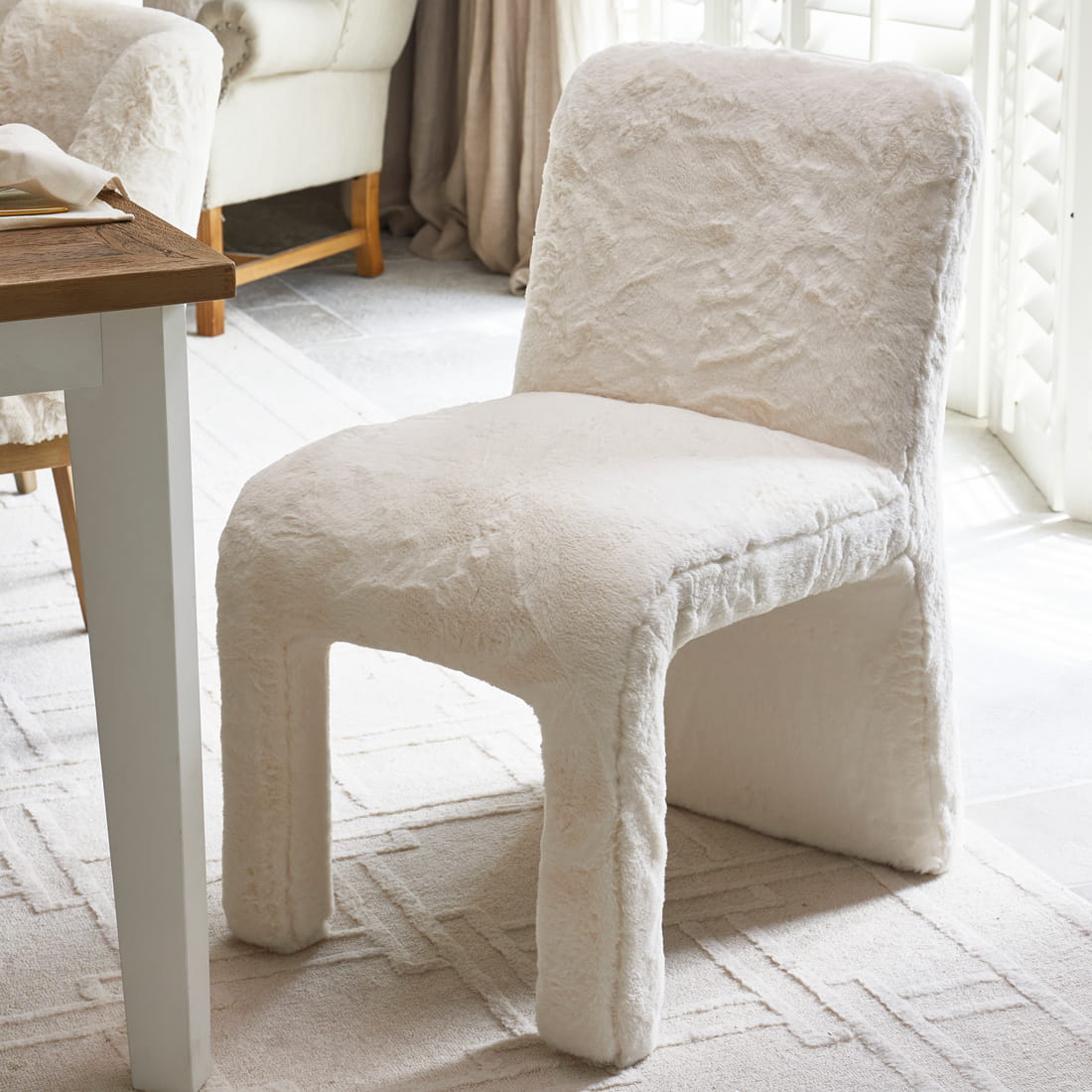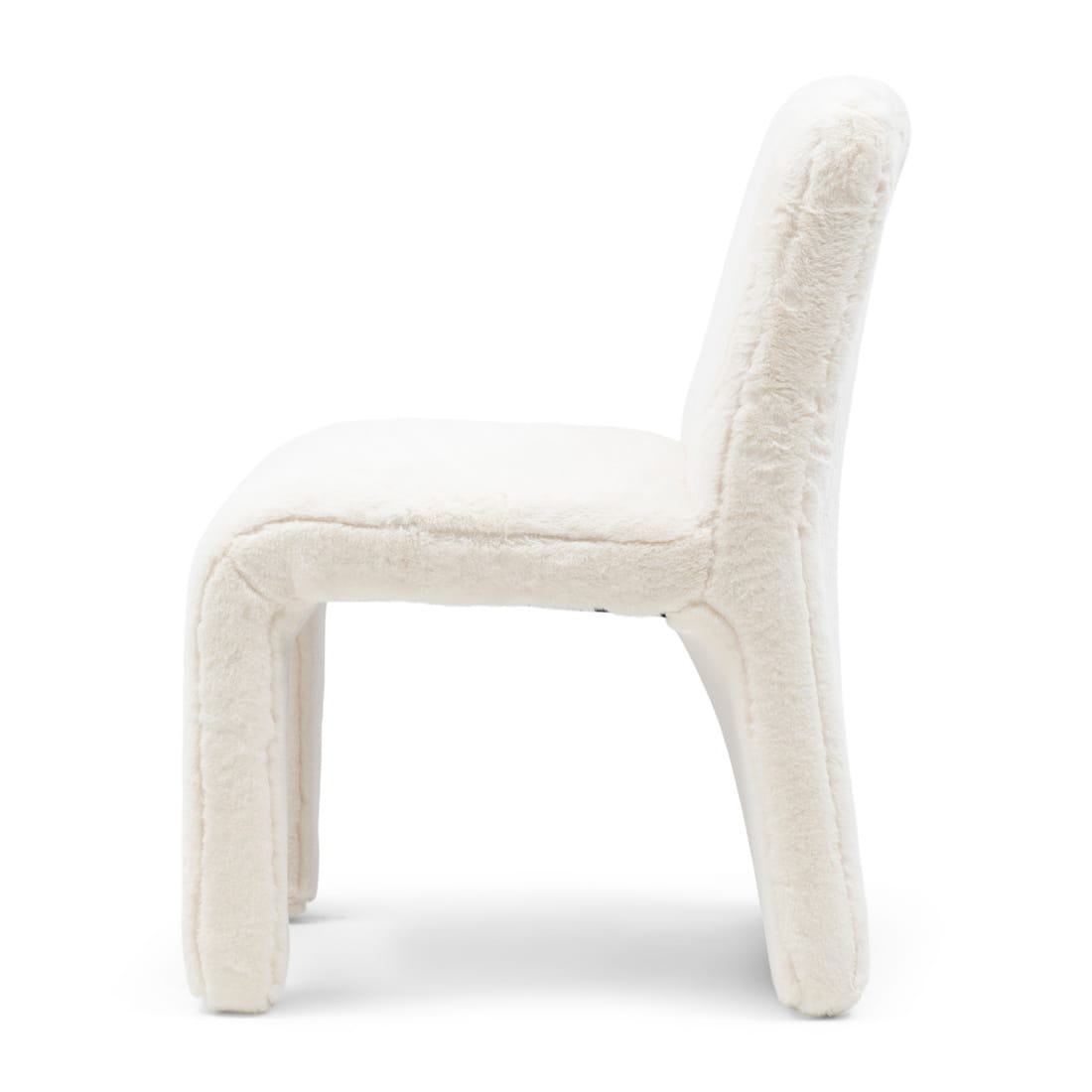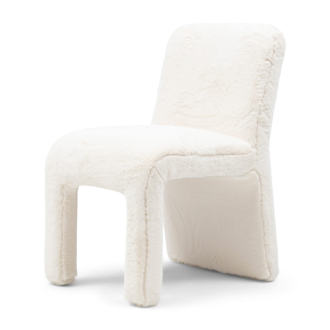 Krzesło do jadalni Callaghan oferuje wyjątkowe połączenie komfortu i stylu. Obite miękkim materiałem ze sztucznego futra, łącznie z nogami, krzesło to doda zimowego charakteru Twojemu wnętrzu. Konstrukcja z dwiema przednimi nogawkami i tyłem przechodzącym w szeroką tylną nogawkę tworzy nowoczesną sylwetkę. Głębokie siedzisko zapewnia dodatkowy komfort, dzięki czemu Callaghan jest idealnym rozwiązaniem na długie kolacje i przytulne wieczory.