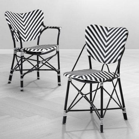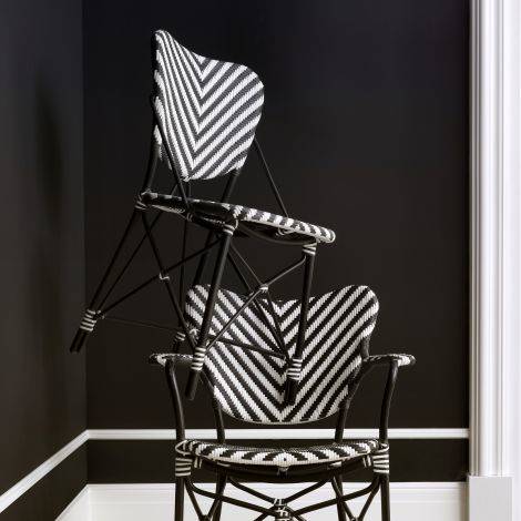 Spice up your dining room or lounge with the monochrome rattan Colony Chair. Drawing inspiration from vintage colonial dining chairs, this hand woven lightweight furniture piece features a black and white chevron aesthetic.