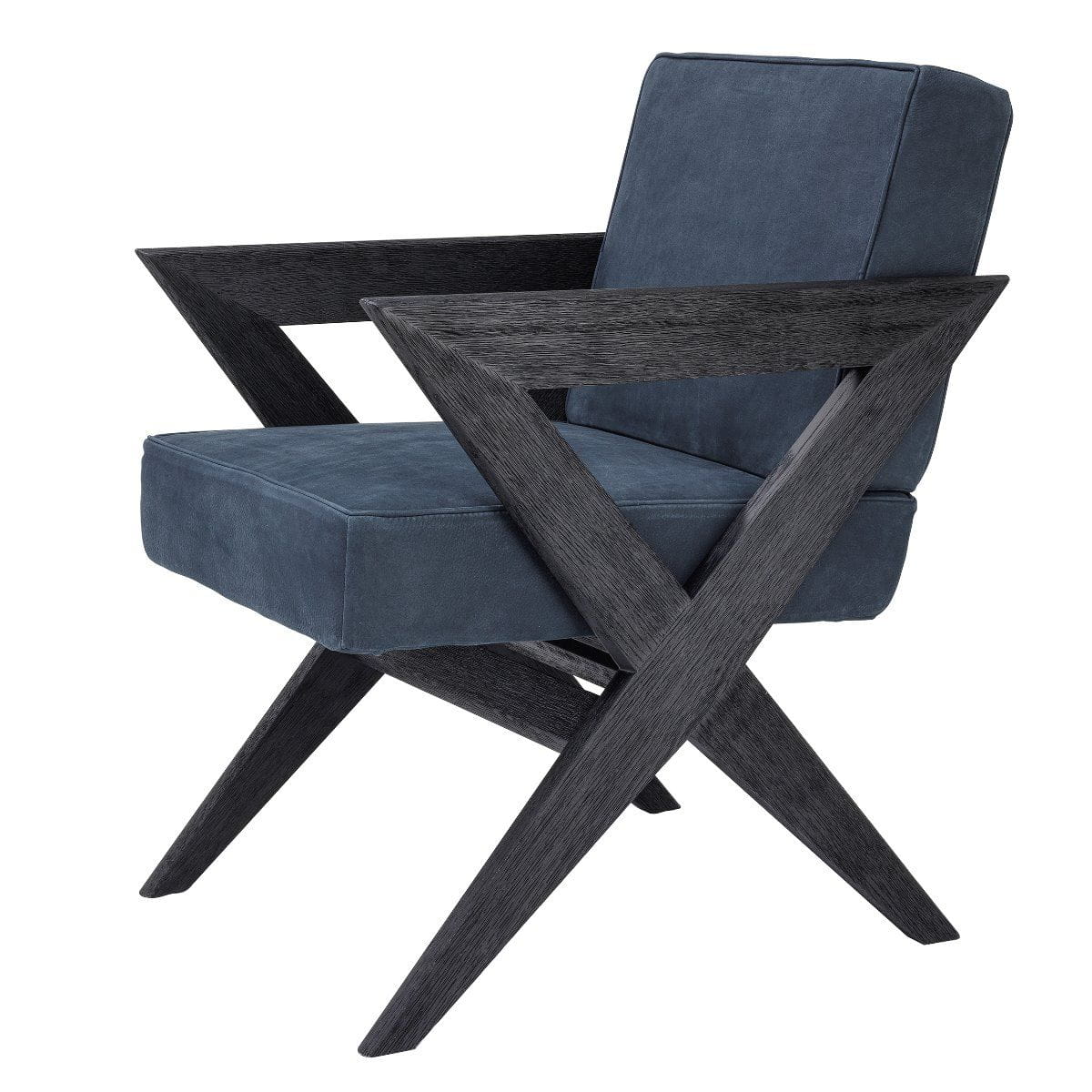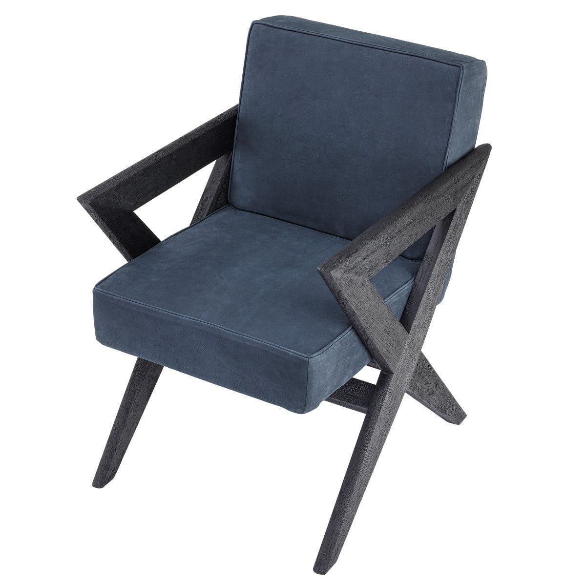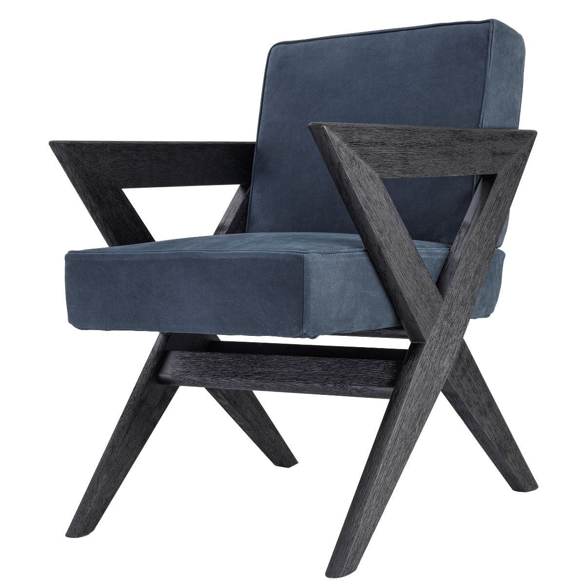Wykończenie: czarny dąb, obicie z granatowego nubuku.
