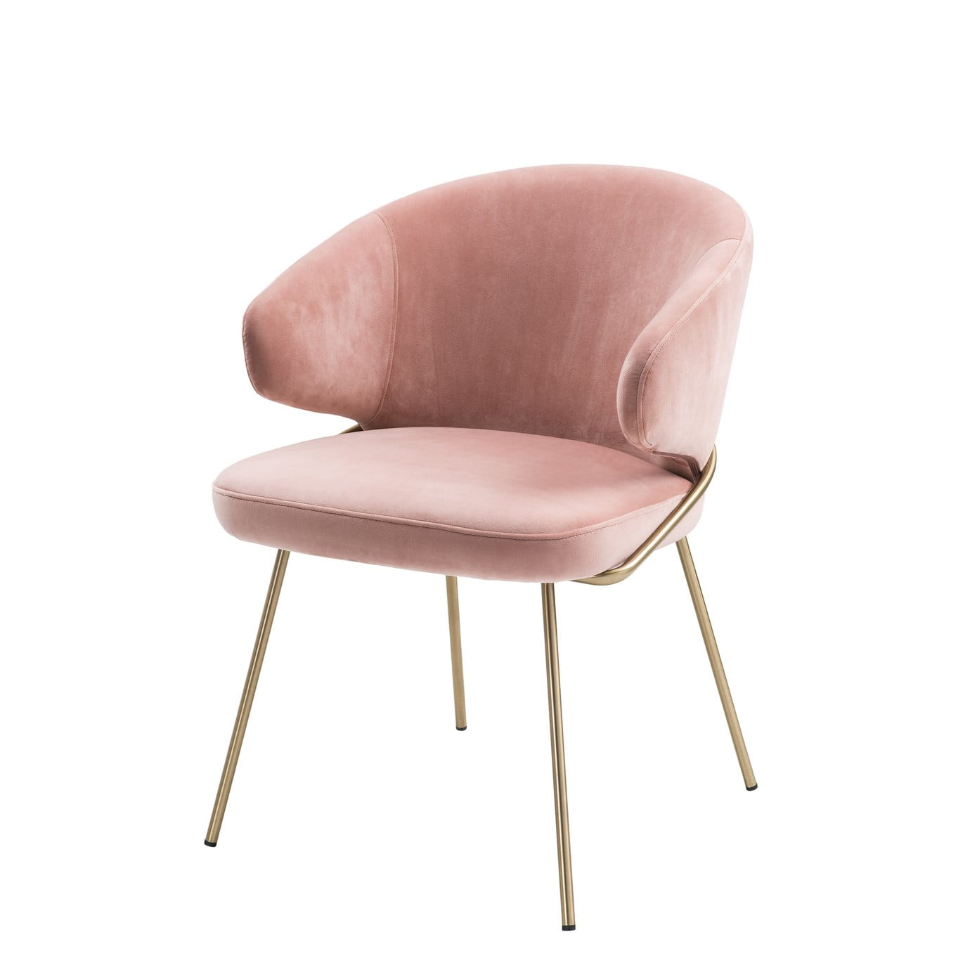 Host your guests in style with the Kinley Dining Chair. With a bent backrest and a seat in a Savona nude velvet upholstery and brushed brass legs, this eye-catching armchair exudes Mid-Century Modern flair.