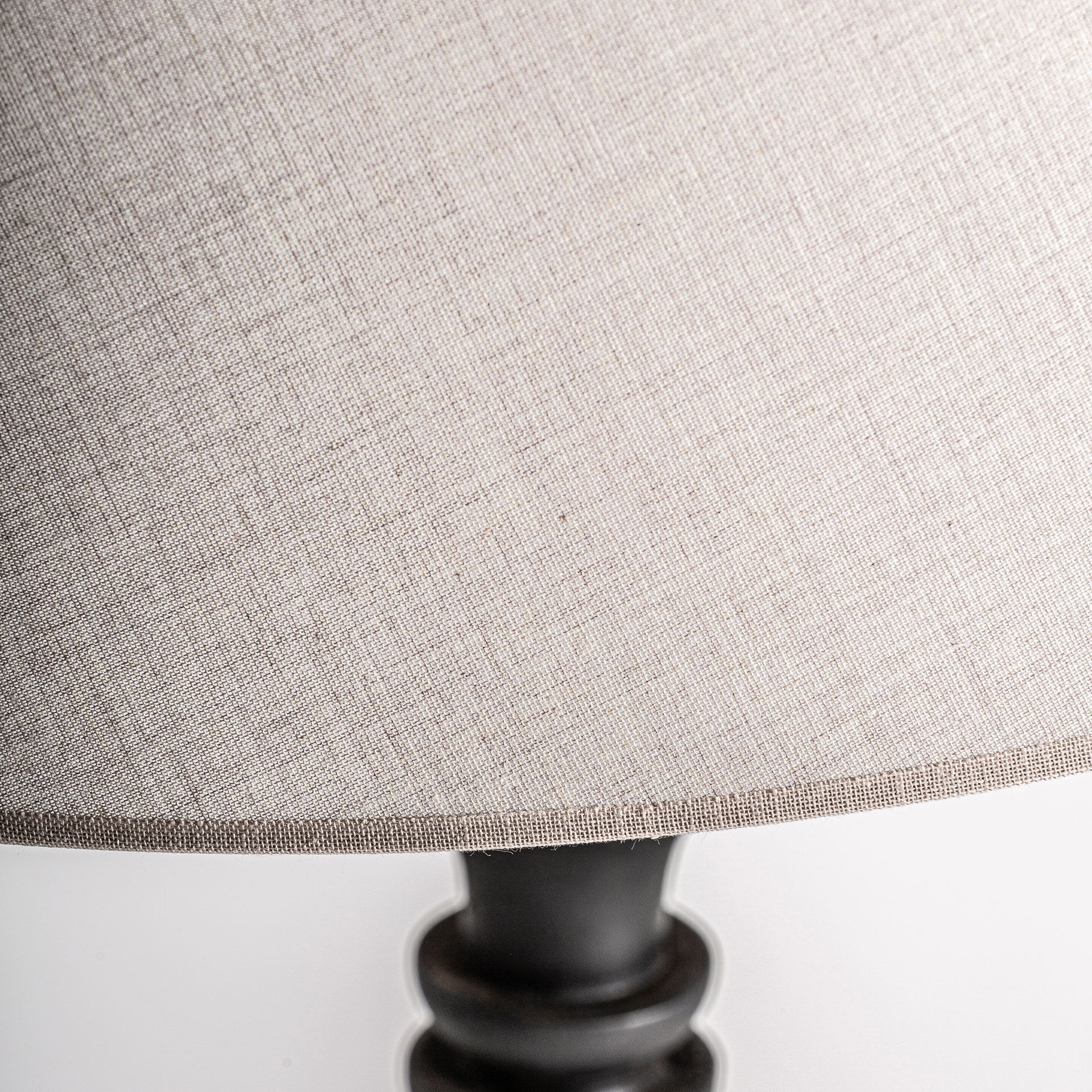 Lampa z podstawą z jasnej, postarzałej terakoty oraz abażurem z lnu w odcieniu bieli złamanej subtelnie rozprasza światło, tworząc przytulną atmosferę w każdym wnętrzu.