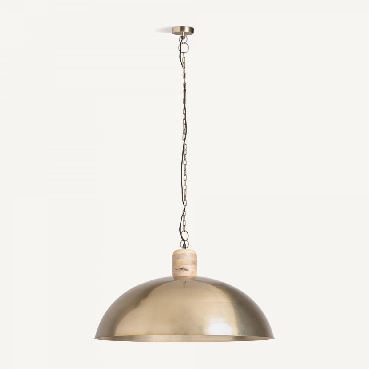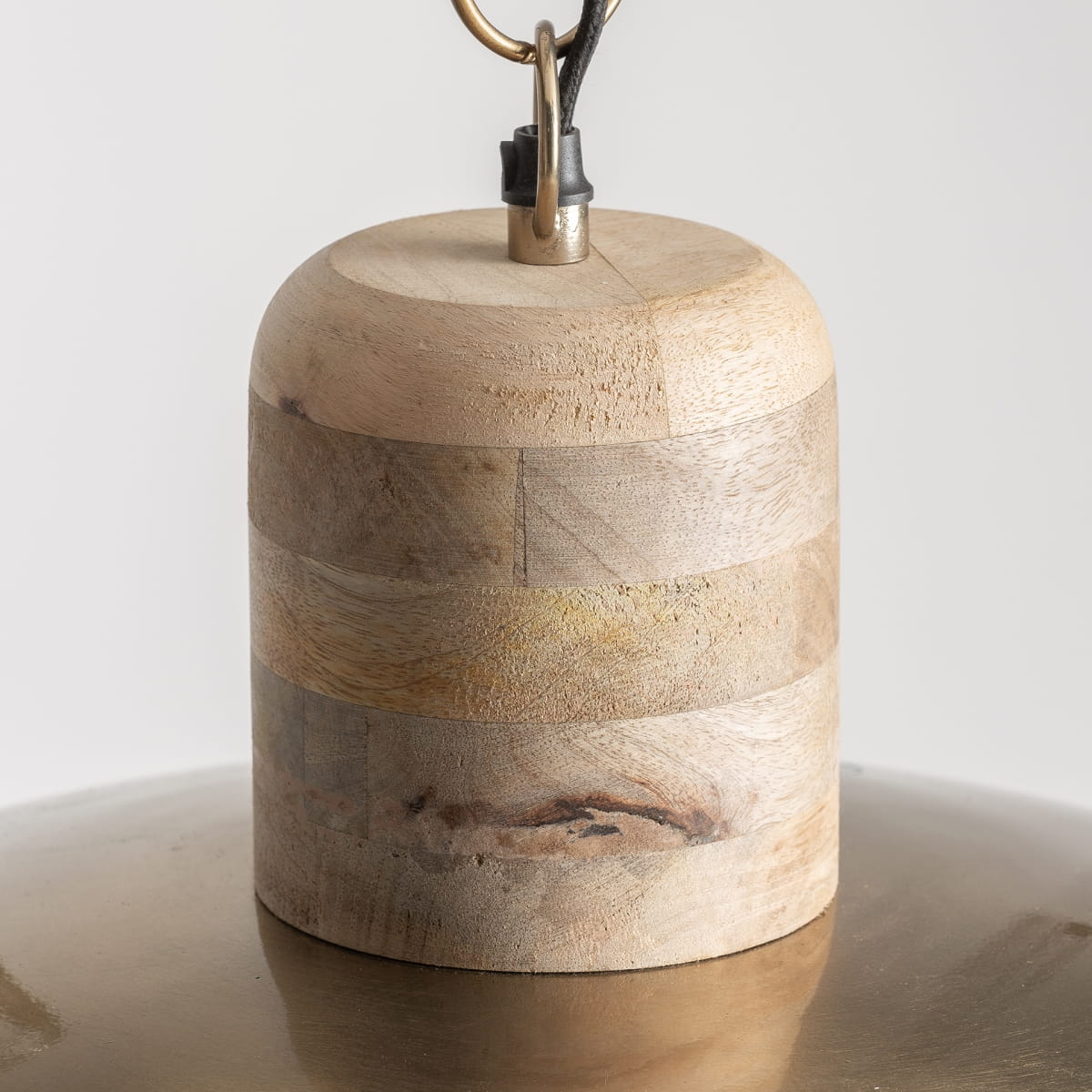 Lampa sufitowa w kolorze złotym, w stylu art deco. Wykonane z żelaza w połączeniu z drewnem mango.