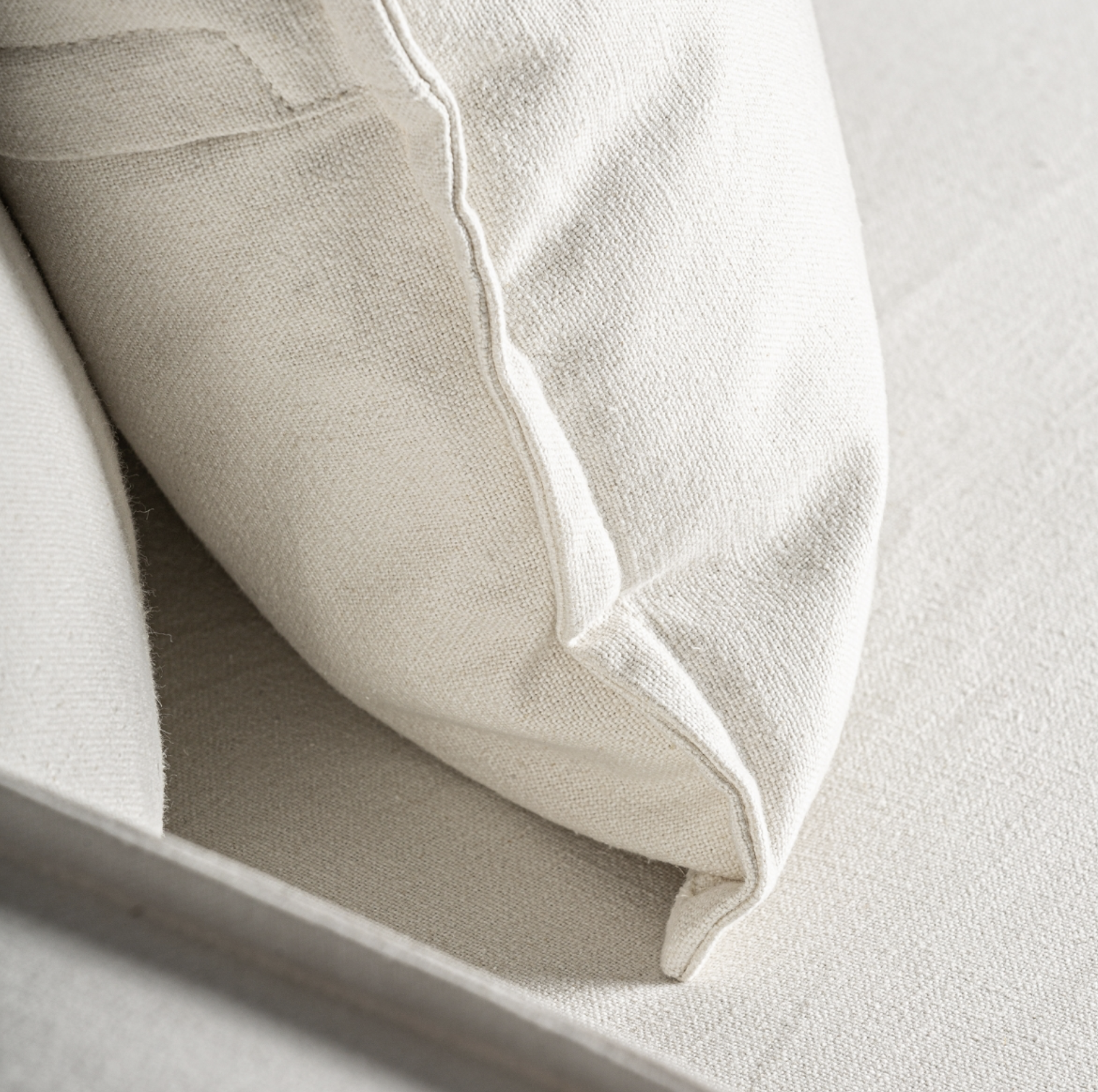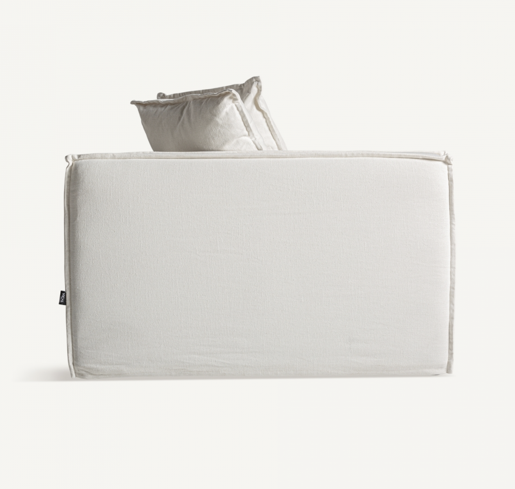 Harmonia w formie narożnej. Ten lewy moduł narożny Viridelle, w białym lnie z gładkim wykończeniem,